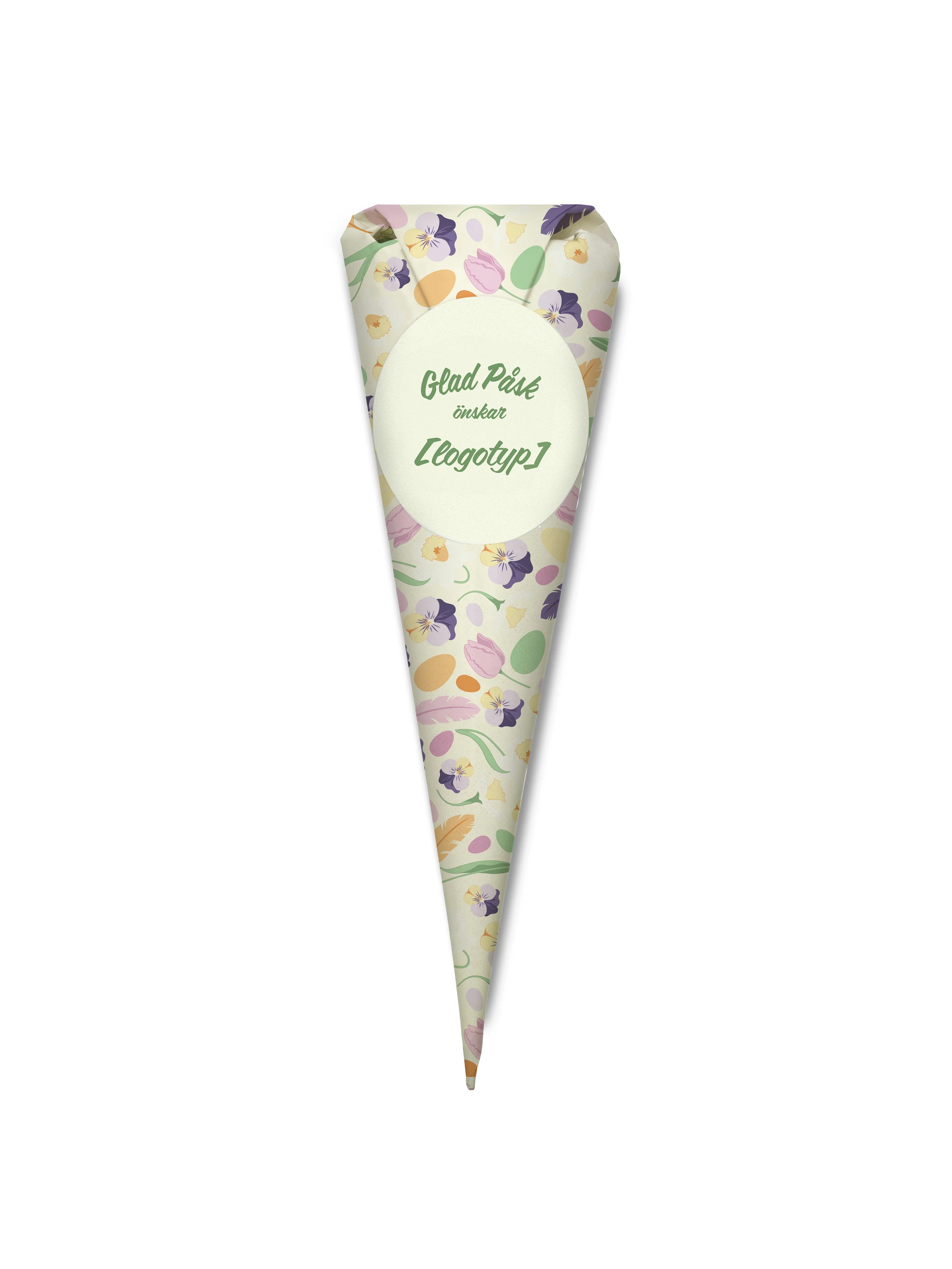 Klassisk godisstrut är alltid uppskattat! Fylld med antingen krämiga nougatägg i folie eller krispiga mjölkchokladägg med sockerskal . Tryck din logotyp och hälsning på vårt påskmotiv eller designa ditt eget strutpapper och etikett. Hållbarhetstid ca 8 månader
